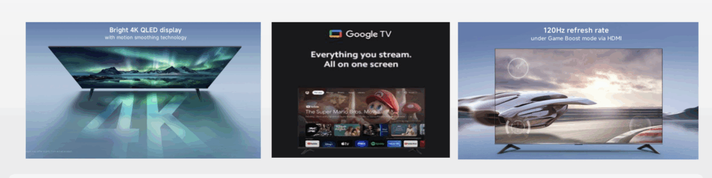 Телевизоры работают на обновлённой системе Google TV, поддерживают Chromecast, Google Assistant и Bluetooth 5.2, а также легко подключаются к другим устройствам Xiaomi.