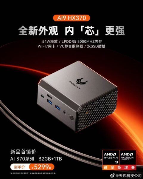 Компания Aoostar представила компактный мини-ПК GEM10 370, оснащённый высокопроизводительным процессором AMD Ryzen AI 9 HX 370. Этот 12-ядерный 24-поточный чип с тактовой частотой до 5,1 ГГц и интегрированной графикой Radeon