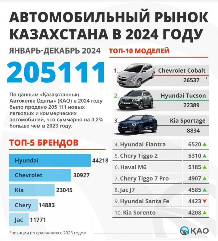 По данным Қазақстанның Автокөлік Одағы (ҚАО), декабрь 2024 года стал рекордным месяцем — 25 570 проданных машин, что на 8,6% выше показателей прошлого года. И это несмотря на колебания курса доллара, от которого напрямую зависит стоимость автомобилей. Эксперты объясняют этот феномен просто: покупатели старались приобрести авто по старой цене, пока дилеры не успели ее скорректировать. Сезонный фактор тоже сыграл свою роль — многие делают крупные покупки в предновогодний период.