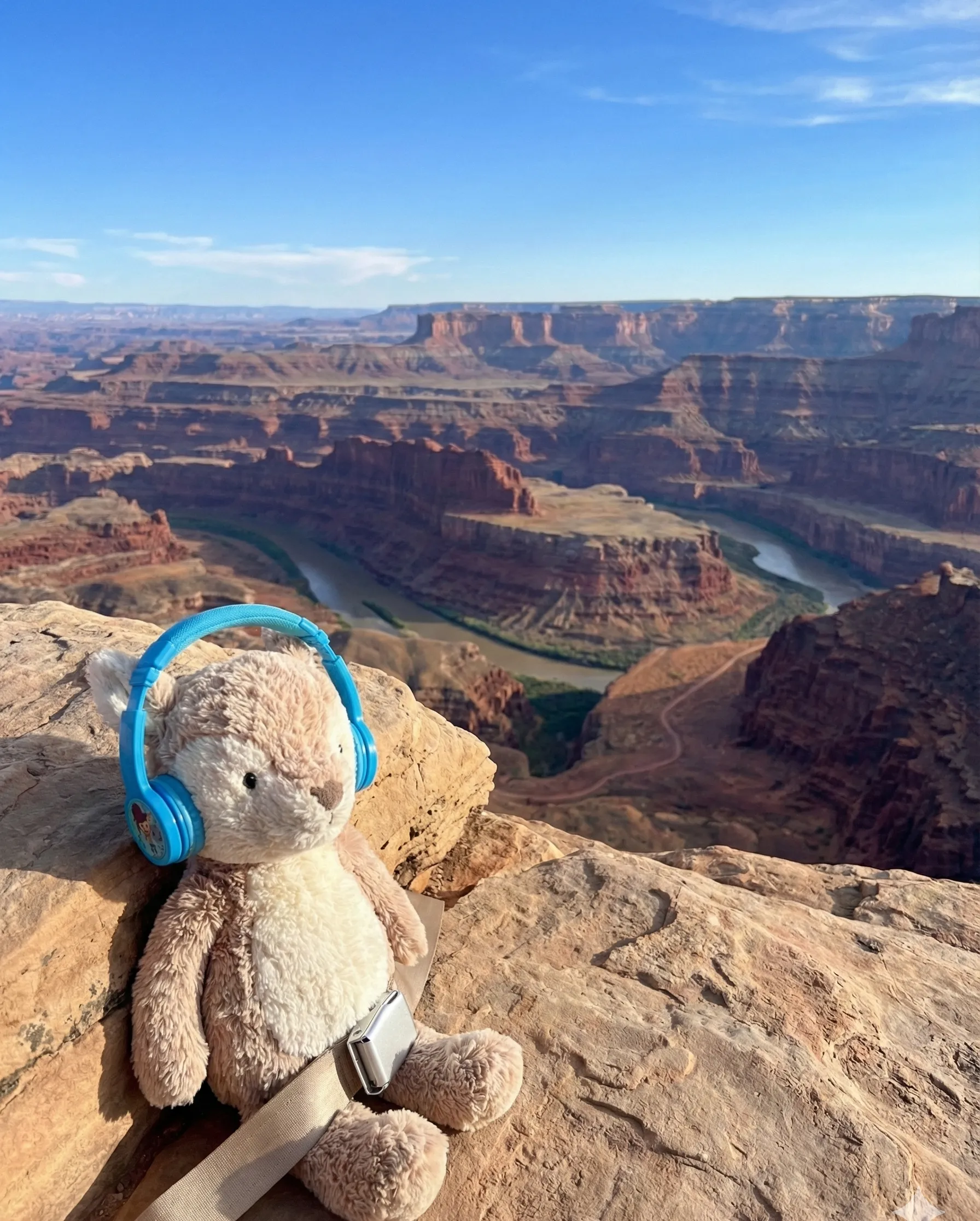 Следующий запрос — «тот же олень на фоне Гранд-Каньона» — Gemini выполнил буквально: олень оказался у каньона, но с ремнем безопасности и наушниками из самолета. Только после более точных и детализированных подсказок изображение стало выглядеть убедительно.