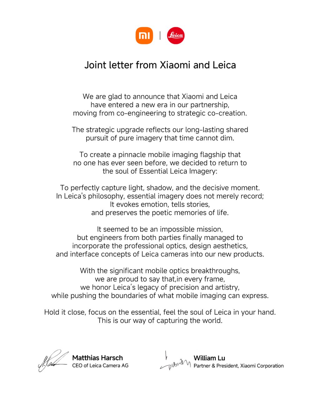 Xiaomi и Leica вступили в новую эпоху нашего партнерства, перейдя от совместной разработки к стратегическому со-созданию.